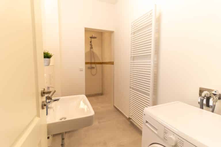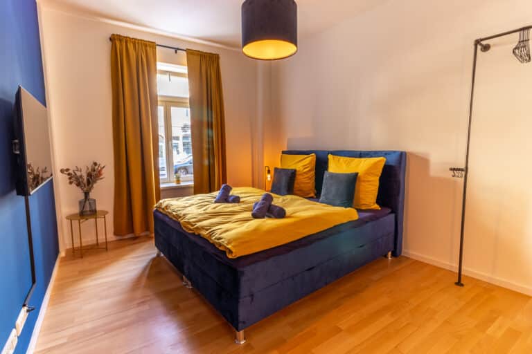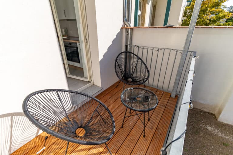 Eine umfangreiche Ausstattung und ein stilvoller und gemütlicher Flair laden Sie zum Wohlfühlen ein. Die geräumige Einraumwohnung mit seperater Küche mit Balkon und einem modernem Bad mit Dusche und einer Waschmaschine ausgestattet, bietet Ihnen alles was Sie brauchen. Das stilvolle Schlafzimmer verfügt über ein gemütliches 180cm Boxspringbett und ein Kleiderstangensystem. Der Balkon im ruhigen Innenhof geschmückt mit einer gemütlichen Lichterkette ist ein besonders schöner Ort, um den Abend ausklingen zu lassen.